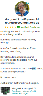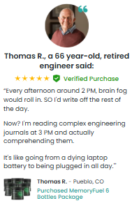 “I’ve struggled with brain fog for years, especially in my 40s. After taking MemoryFuel for just two weeks, I’ve noticed significant improvements in my focus and mental clarity. I’m able to concentrate better at work and feel less scattered. Definitely recommend it!”